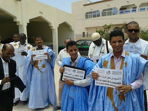 رؤيا بوست: نظمت النقابة المستقلة لأساتذة التعليم الثانوي SIPES وقفة احتجاجية امام مباني وزارة التهذيب الوطني بنواكشوط، وقد رفع الاساتذة ذات المطالب اليت رددوها خلال الوقفة الماضية التي فضتها الشرطة بالقوة، وقد تم تنظيم الوقفة في عدة مناطق من البلاد، و قال الأمين العام للنقابة بأن الوقفة لاقت استجابة من منتسبي النقابة في الداخل وانواكشوط حيث تم التوقف عن العمل لمدة ساعتين، وقال:…رغم حرارة الشمس وسخونة أجواء الصيف التي نعيشها هذه الأيام، رغم كل ذلك ظلت درجة حرارة النضال في نفوس مناضلينا وبين جوانحهم أذكى وأدعى لمواجهة كل الظروف والصعاب في سبيل الدفاع عن الحقوق والمكتسبات، وسعيا لتحقيق المطالب. فهنيئا هنيئا شموع النضال** فنيل الحقوق بكم مرتهن. وإلى الأمام في نضالنا السلمي المشروع ، فقد رفعتم رؤسنا اليوم بحضوركم ومشاركتكم المكثفة في الوقفات التي نظمت هنا وهناك، وأثبتم للجهات المعنية أن أسلوب القمع والترهيب لن يخيفنا أبدا، بل سيزيدنا إصرارا على المضي قدما في نهجنا النضالي السلمي حتى ننال حقوقنا ومطالبنا كلها وننتصر”.