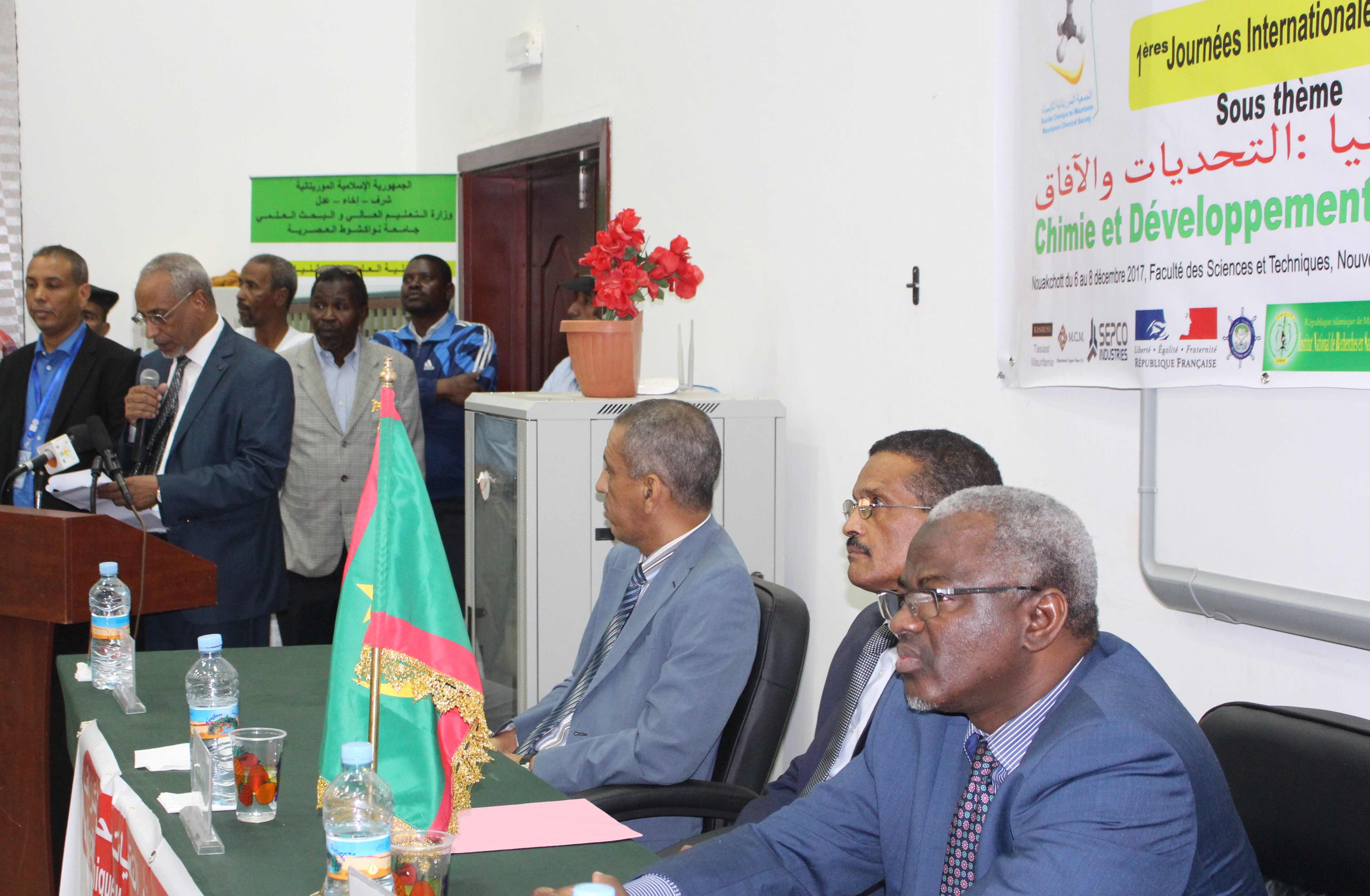 حفل الافتتاح استهل بكلمة لرئيس الجمعية الموريتانية للكيمياء الدكتور محمد الأمين ولد شامخ رحب في بدايتها بالوفود المشاركة من الدول المغاربية والأوروبية ، وأشاد بالأجواء العامة في البلد والتي تعتبر أهم عامل للبحث العلمي حيث مكنت الإرادة السياسية لصاحب الفخامة محمد ولد عبد العزيز على مدى السنوات الماضية من تحقيق إنجازات ملموسة شملت مختلف المجالات ونال قطاع التعليم العالي منها نصيب الأسد ، وأضاف الدكتور محمد الأمين ولد شامخ  وتأسيسا على هذه الإرادة وبالنظر إلى تلك الإنجازات قرر المدرسون والباحثون الموريتانيون في مجال الكيمياء تأسيس وإنشاء الجمعية الموريتانية للكيمياء كإطار للتبادل والتعاون العلمي البيني مع الجهات الخارجية بغية تطوير البحث العلمي والمساهمة في خلق نهضة صناعية وطنية.