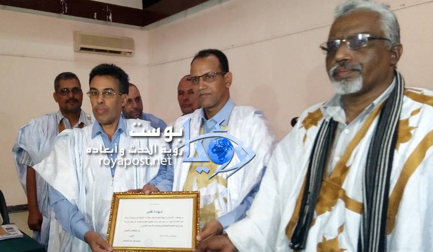 رؤيا بوست: منحت الرابطة الوطنية لتخليد بطولات المقاومة الوطنية شهادة تقدير للرائد في الجيش الوطني سيدي محمد ولد حديد، الحاصل على جائزة شنقيط للآداب مناصفة 2018 خلال حفل أقيم مساء اليوم بنواكشوط.