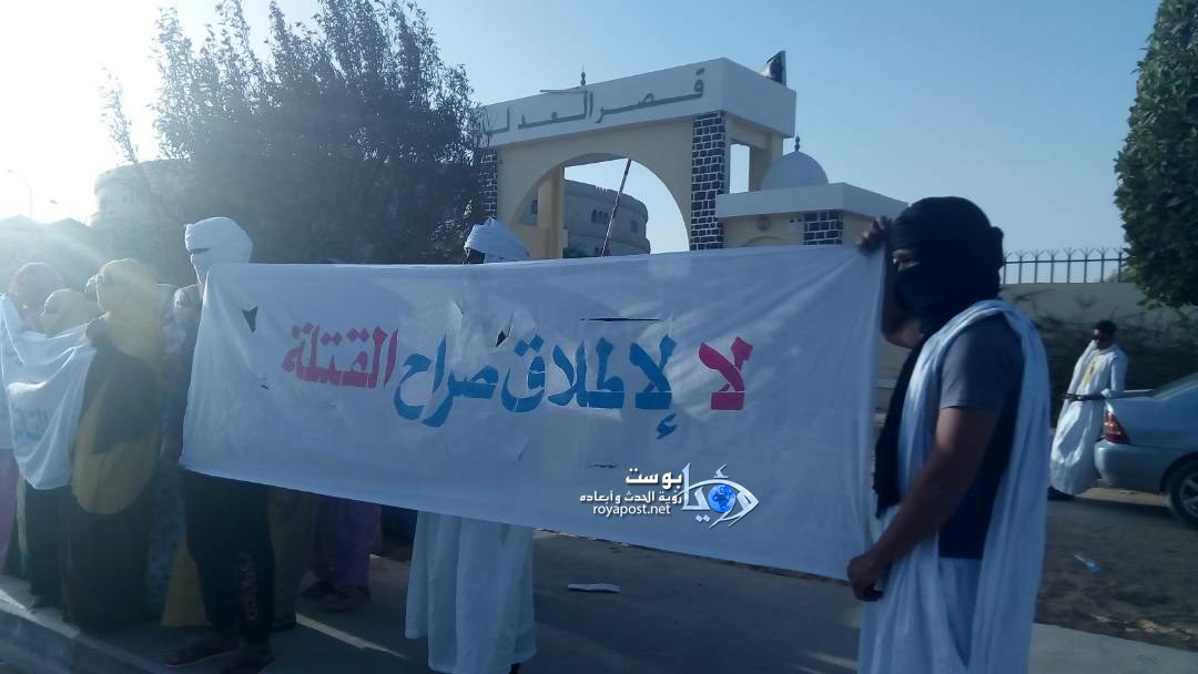 رؤيا بوست: نظم أهالي قتيل حادثة الفلوجة يعقوب عالي جا وقفة احتجاجية مساء اليوم الاثنين أمام قصر العدل بولاية نواكشوط الغربية. وحمل المتظاهرون شعارات تطالب بالقصاص من الشيخ ولد آمين الذي برأته العدالة وتم تكييف الحادثة على أنها دفاع عن النفس…وقالت اخت القتيل لرؤيا بوست بأنها تطالب بسجن قاتل أخيها الذي لم يسجن يوما واحدا حسب ما قالت، مضيفة بأن الأمر يدفع الناس لأخذ الثأر بعضهم من بعض.