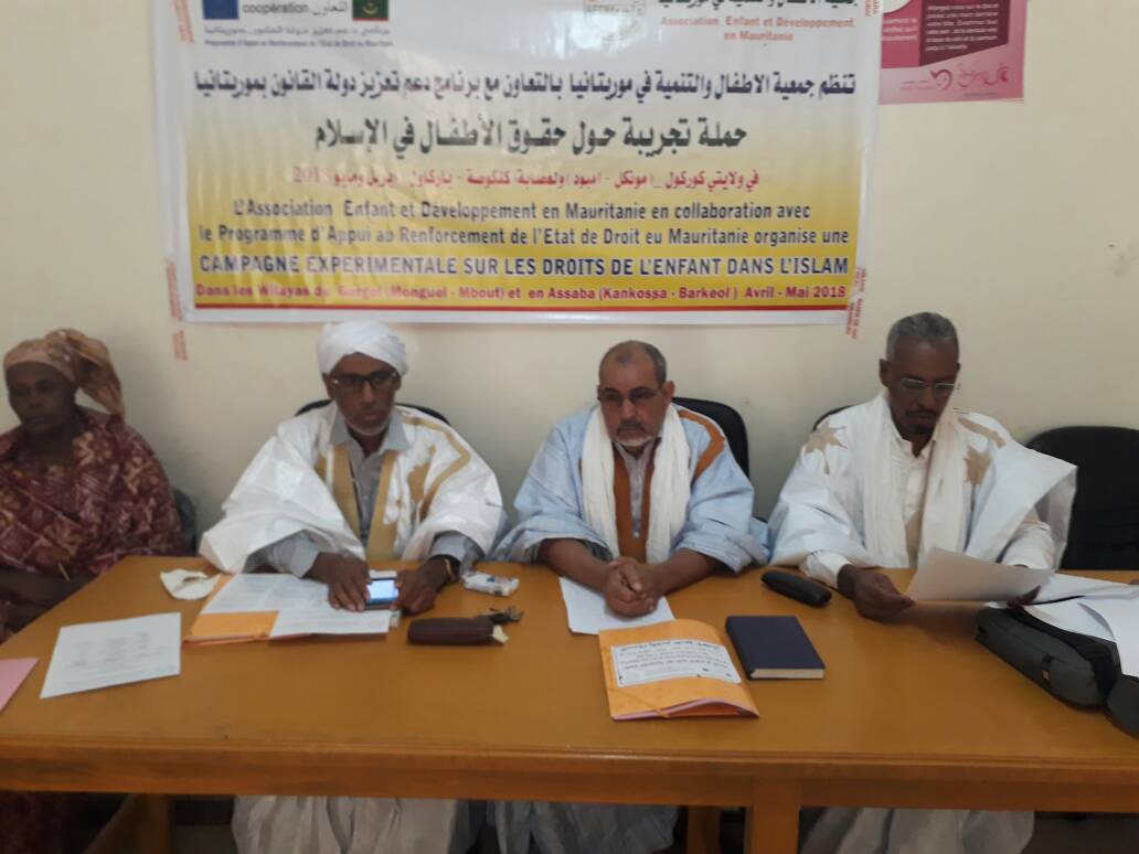 رؤيا بوست: افتتحت اليوم الثلاثاء 24/04/2018 في مدينة كيهيدي عاصمة ولاية كوركول ورشة جهوية حول حقوق الطفل فى الإسلام ، منظمة من طرف منظمة جمعية الأطفال والتنمية، بحضور الوالي المساعد للولاية والسيد علي ولد عيسى، افتتحت الورشة، و قدم الفقيه الدكتور الشيخ ولد الزين ولد الإمام محاضرة حول حقوق الطفل فى الإسلام بين فيها المفارقة الحاصلة بين قيم الإسلام وواقع المسلمين، وتحدث عن مظاهرات الاختلالات القيمية فى المجتمع الإسلامي وآثار ذلك على صورة الإسلام .