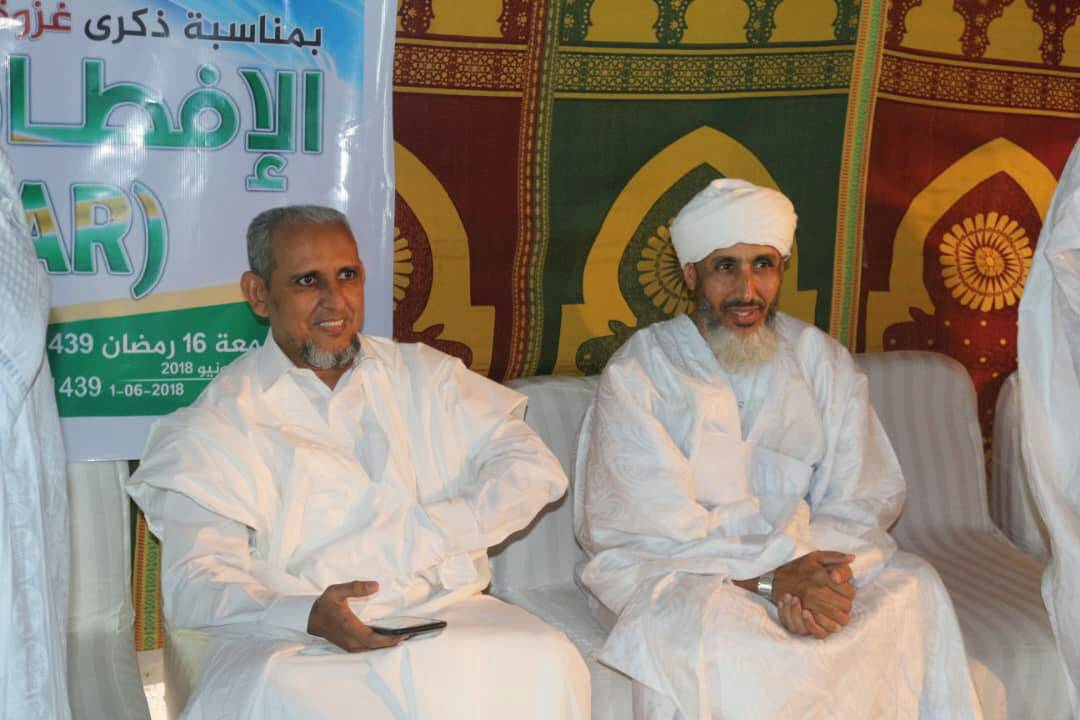 وقد كان إلى جانبه مفتيى القاعد السابق الشيخ محفوظ ولد الوالد، قائلا بأن الدرس الذي يمكن استخلاصه هو في أن التمكين للاسلام ودعوته لا يتأسس بالضرورة على حسابات العدد والعدة التي كان ميزانها مختلا في غزوة بدر الكبرى لصالح القوى المعادية للاسلام في ذلك التاريخ، ومع ذلك كان النصر والتمكين للاسلام ومشروعه وذلك لقوة إيمان اتباعه وإخلاصهم وتضحيتهم وصبرهم على المشروع الذي يؤمنون به.