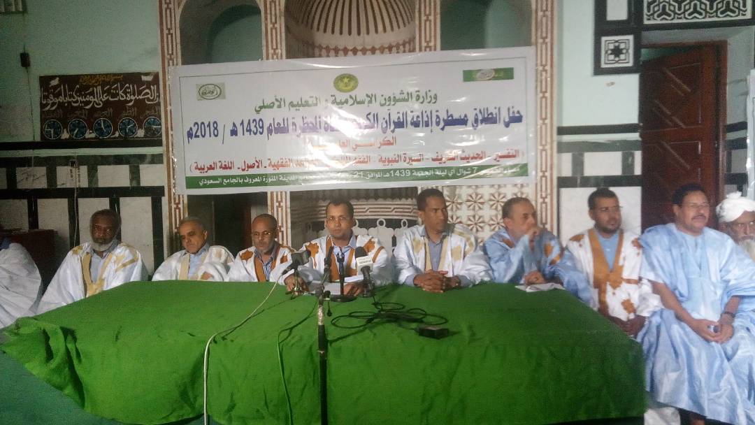 اشرف وزير الشؤون الاسلامية والتعليم الاصلي احمد ولد اهل داوود مساء الخميس بالجامع الكبير في نواكشوط على انطلاقة مسطرة برامج جديدة لاذاعة القرآن الكريم وقناة المحظرة للعام الهجري 1439 الموافق 2018م .