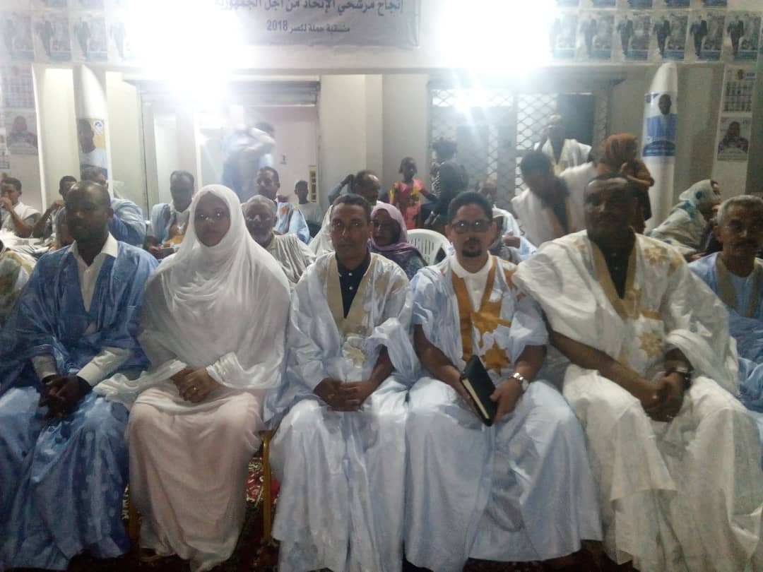 كما حضر مرشحو الحزب على مستوى نيابيات لكصر محمد ولد اشريف ولد عبد الله، والمرشح لمنصب العمدة الدكتور محمد السالك ولد عمار ، و عدد من طواقم الحملة الانتخابية واتحادي ولاية نواكشوط الغربية نور الدين سيدي عالي فرانسوا.