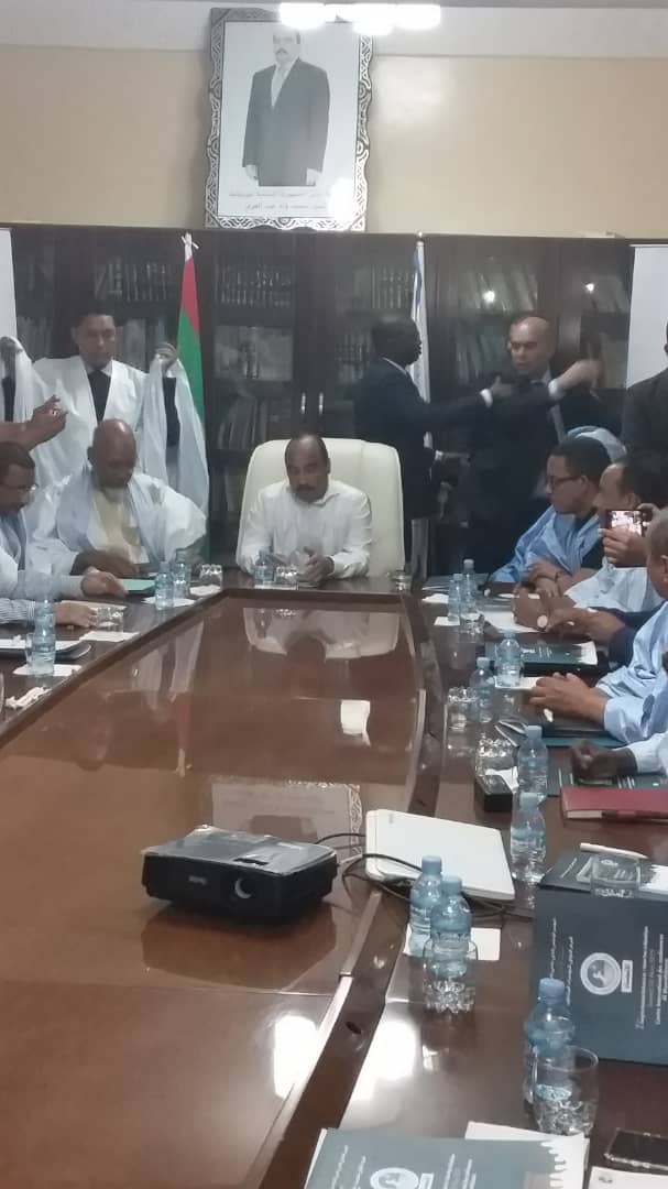 وتعد المرة الأولى التي يحضر فيها ولد عبد العزيز لمقر حزب الاتحاد من أجل الجمهورية منذ وصوله للحكم.