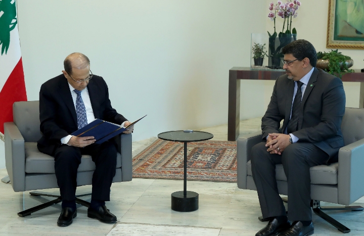 ﻭ ﺳﻠﻢ ﺍﻟﺮﺳﺎﻟﺔ ﺍﻟﻴﻮﻡ ﻓﻲ ﺑﻴﺮﻭﺕ ﻭﺯﻳﺮ ﺍﻟﺜﻘﺎﻓﺔ ﻭﺍﻟﺼﻨﺎﻋﺔ ﺍﻟﺘﻘﻠﻴﺪﻳﺔ ﻭﺍﻟﻌﻼﻗﺎﺕ ﻣﻊ ﺍﻟﺒﺮﻟﻤﺎﻥ، ﺍﻟﻨﺎﻃﻖ ﺍﻟﺮﺳﻤﻲ ﺑﺎﺳﻢ ﺍﻟﺤﻜﻮﻣﺔ، ﺍﻷﺳﺘﺎﺫ ﺳﻴﺪﻱ ﻣﺤﻤﺪ ﻭﻟﺪ ﻣﺤﻢ،ﺍﻟﻤﺒﻌﻮﺙ ﺍﻟﺨﺎﺹ ﻟﺮﺋﻴﺲ ﺍﻟﺠﻤﻬﻮﺭﻳﺔ ﺧﻼﻝ ﻟﻘﺎﺀ ﺧﺼﻪ ﺑﻪ ﺍﻟﺮﺋﻴﺲ ﺍﻟﻠﺒﻨﺎﻧﻲ .