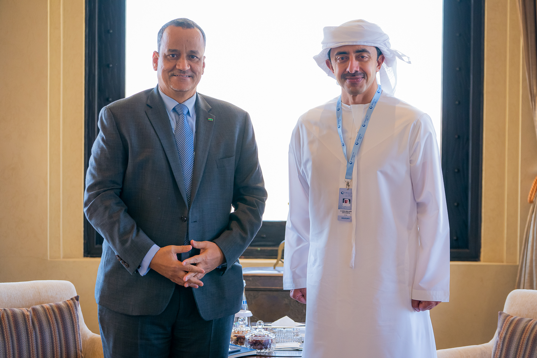 استُقبل السيد اسماعيل ولد الشيخ أحمد وزير الخارجية الموريتاني من قبل نظيره الإماراتي سمو الشيخ عبدالله بن زايد آل نهيان وزير الشؤون الخارجية والتعاون الدولي .