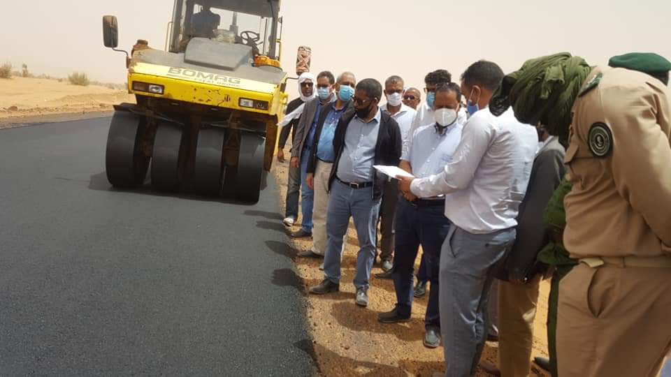 وزير التجهيز والنقل السيد محمدو ولد امحيميد تفقد واطلع على عمليات تشييد واعادة تأهيل 700متر من الطريق في منطقة بيظت الما بعد أن جرفتها السيول السنة الماضية بفعل تجاوز السيول لحاجز محلي لمياه الأمطار، الوزير تفقد ايضا العمليات الجارية لإضافة طبقة اسفلتية ذات سمك 3سم بعد معالجة التشققات وتأهيأتها على طول 5 كلم بالقرب من منطقة بيظت الما، معالي الوزير دعى لتسريع الاشغال والعمل بجدية واحترام دفاتر الالتزامات من أجل الجودة متعهدا بمتابعة العمل بغية الوصول للأهداف المنشودة.