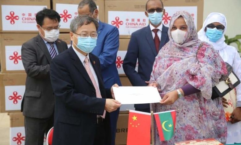 سلم سعادة السفير الصيني في نواكشوط السيد جانغ جيان قوه دفعة من المستلزمات الطبية المخصصة لمكافحة جائحة كوفيد19 مقدمة كتبرع من الأستاذة السيدة بونغ لي يوان عقيلة فخامة الرئيس الصيني السيد شي جينبينغ نيابة عن الحكومة الصينية إلى الجانب الموريتاني. استلمت التبرعات المذكورة أعلاه الأمينة العامة لوزارة الصحة الموريتانية ومسؤولة مكتب السيدة الأولي مريم بنت محمد فاضل ولد الداه التابع للرئاسة نيابة عن الحكومة الموريتانية.