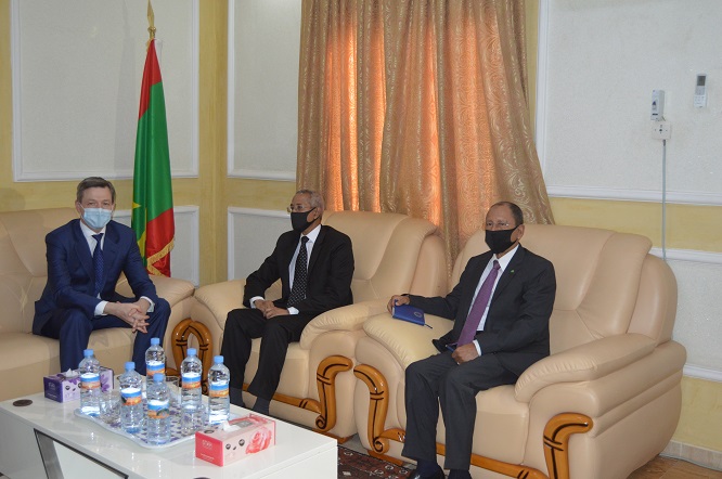 استقبل السيد حننه ولد سيدي وزير الدفاع الوطني مساء اليوم في مكتبه السيد توماس سيلبيرهورن كاتب الدولة البرلماني لدى وزارة الدفاع الاتحادية الألمانية الذي يؤدي زيارة حاليا لبلادنا. وتندرج هذه الزيارة في إطار جولة يقوم بها المبعوث الألماني في دول منطقة الساحل، لتعزيز التعاون ما بين ألمانيا الاتحادية ومجموعة دول الساحل الخمس، باعتبار ألمانيا هي إحدى الدول الداعمة للمجموعة.