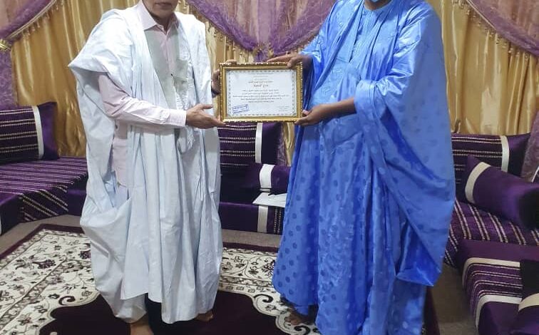 قدمت جمعية مبادرة شباب الحوض الشرقي “درع التنمية” لفخامة رئيس الجمهورية السيد محمد ولد الشيخ الغزواني على هامش زيارة فخامته لمدينتي النعمة وتمبدغة؛ وافتتاحه لمعرض الثروة الحيوانية لمدينة تمبدغة.