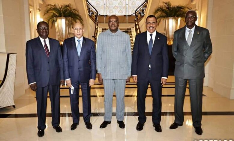 ويحدد البيان الصحفي أن قضايا الأمن والتنمية والتمويل كانت محور المناقشات. بالإضافة إلى رئيس الجمهورية محمد ولد الشيخ الغزواني حضر الإجتماع الرئيس الدولي المنتدب للمجموعة رئيس بوركينا فاسو روش مارك كابوري، والرئيس النيجيري محمد بازوم ، والرئيس الانتقالي لمالي باه نداو ، ورئيس وزراء تشاد ألبرت باهيمي باداكي.