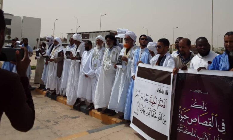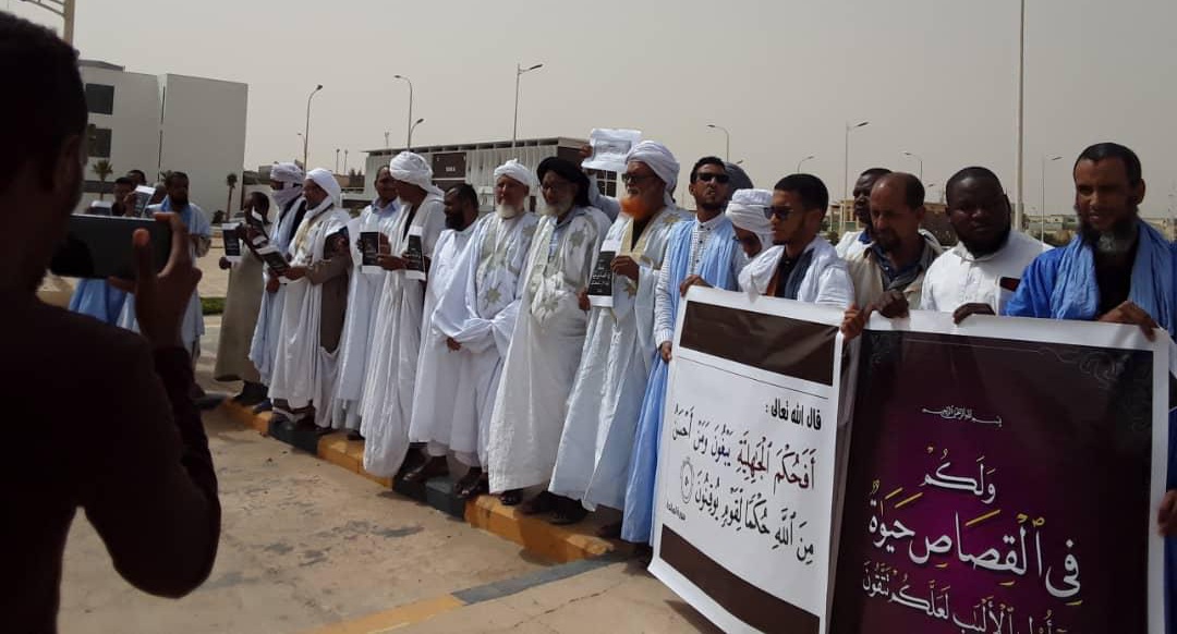 وقد نظم عدد الائمة والفقهاء اليوم الخميس وقفة أمام القصر الرئاسي لمطالبة الحكومة بتطبيق الشريعة الإسلامية، وخصوصا حكم القصاص في حق القتلة، وذلك عقب تسجيل جرائم حرابة وقتل عديدة خلال الفترة الأخيرة.