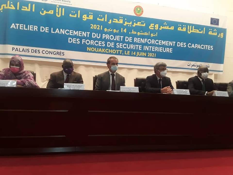 أشرف معالي وزير الداخلية واللامركزية السيد محمد سالم ولد مرزوك صباح اليوم الاثنين بقصر المؤتمرات في نواكشوط على افتتاح الورشة المنظمة بمناسبة الانطلاقة الرسمية لمشروع تعزيز قدرات قوات الأمن الداخلي في مجالي الأمن وحقوق الإنسان.