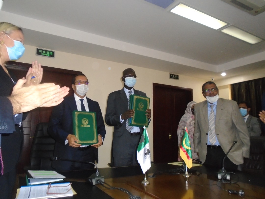 وقع معالي وزير الشؤون الاقتصادية وترقية القطاعات الإنتاجية عثمان مامادو كان مع السيد محمد العزيزي المدير العام للمكتب الجهوي للتنمية وتقديم الخدمات لشمال افريقيا بالبنك الافريقي للتنمية، على اتفاقيتي تمويل على شكل هبة مقدمة من طرف البنك الإفريقي للتنمية، بملبغ إجمالي قدره ستة ملايين (6.000.000) وحدة حسابية ،أي مايعادل حوالي ثلاث مائة وعشر ملايين أوقية جديدة (310.000.000) .