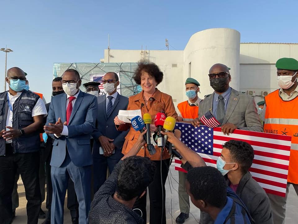 وقالت إنغر تانغبورن القائمة بالأعمال في سفارة الولايات المتحدة بموريتانيا في تصريح لها خلال وصول التلاقيح “أحمل معي رسالة من الشعب الأمريكي وهي أننا سنقف دائمًا إلى جانب الشعب الموريتاني كلما دعت الضرورة الى ذلك.”