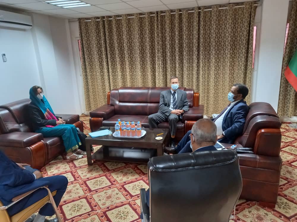 استقبل معالي وزير الشؤون الإسلامية والتعليم الأصلي السيد الداه ولد أعمر طالب صباح اليوم الاثنين بمكتبه سفير الإتحاد الأوربي الجديد سعادة كويليم جون، وقد تناول معالي الوزير مع سعادة السفير علاقات التعاون بين البلد وسبل تعزيزها خاصة في مجال تدخل القطاع، وعبر سعادة السفير عن دعمه للسياسة العامة للدولة في مجال التنمية معبرا عن إعجابه بمضامين مقابلة فخامة رئيس الجمهورية السيد محمد ولد الشيخ الغزواني، مع صحيفة “لوبينيون” الفرنسية وأكد سعادة السفير أن زيارته هذه تدخل ضمن التعارف والإطلاع على أولويات قطاع الشؤون الإسلامية والتعليم الأصلي التى تحتاج الدعم والمناصرة.