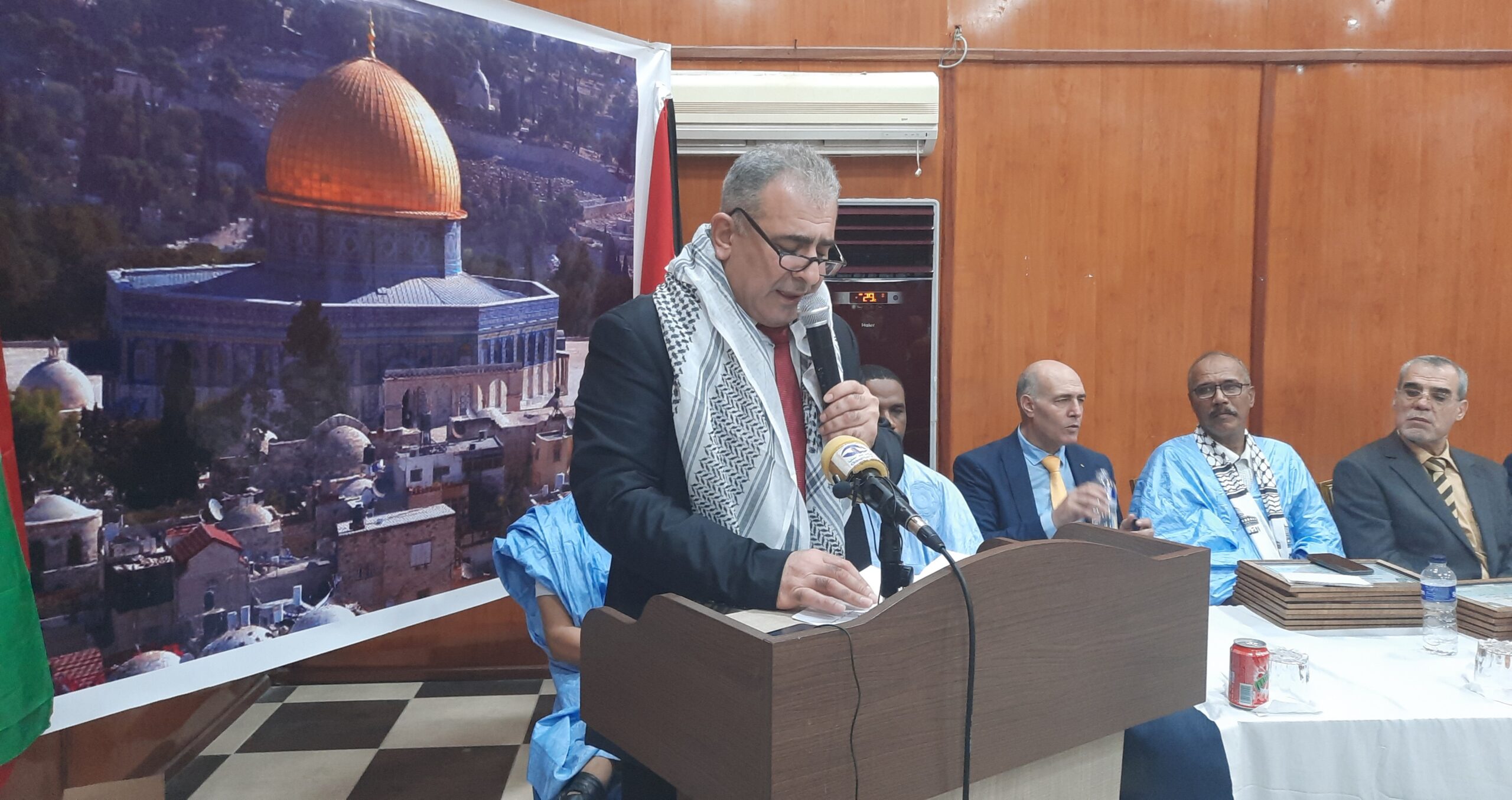وقال سعادة محمد قاسم أسعد الأسعد سفير دولة فلسطين بموريتانيا _في كلمته بالمناسبة _ إن الحكومة الفلسطينية تسعى لترتيب البيت الداخلي الفلسطيني من خلال تشكيل حكومة وحدة وطنية، وفتح حوار شامل مع الفصائل، وترتيب إعادة الإعمار في قطاع عزة الصامد، وذلك بعد مرسوم الرئيس الفلسطيني محمود عباس بتأجيل الانتخابات، ردا على قرار منع دولة الاحتلال التحضير للانتخابات وإجرائها في القدس المحتلة.