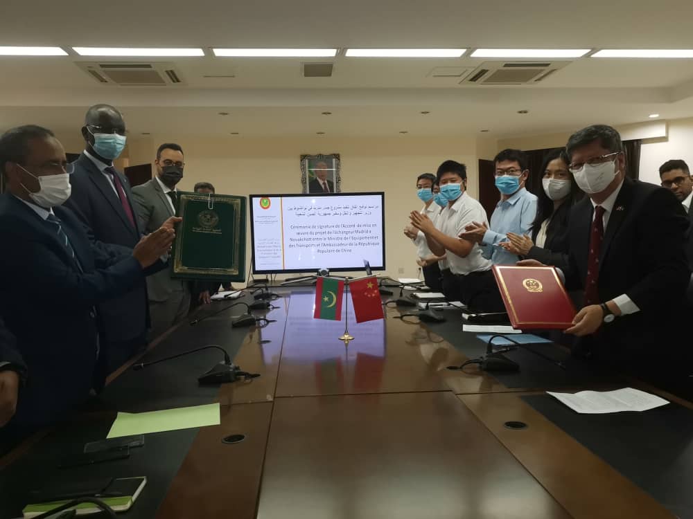 وقعت اليوم في انواكشوط بمباني وزارة الشؤون الاقتصادية مذكرة تفاهم بشأن إنجاز جسر ملتقى طرق مدريد في انواكشوط بين موريتانيا والصين.