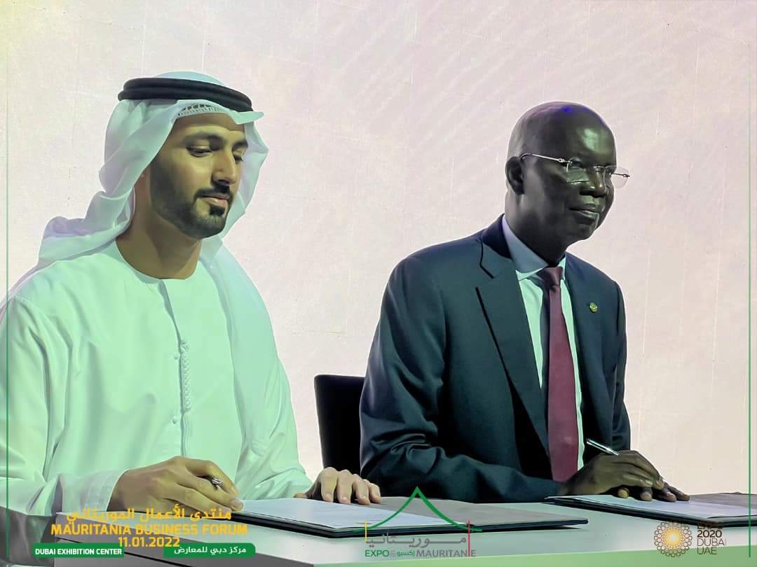 وقع معالي وزير الشؤون الاقتصادية وترقية القطاعات الإنتاجية السيد أوسمان مامودو كان الثلاثاء في دبي بالامارات العربية المتحدة -على هامش اليوم الوطني لموريتانيا المنظم في معرض إكسبو دبي 2020 من طرف بلادنا- مذكرات تفاهم باسم الحكومة الموريتانية نيابة عن معالي وزير التحول الرقمي والابتكار وعصرنة الإدارة، السيد عبد العزيز ولد الداهي مع شركات مهتمة بتطوير تكنولوجيا الرقمنة هي شركات Talent Africa SA و تحالف الامارات Technical Soulitions و Serdal Limitrd.