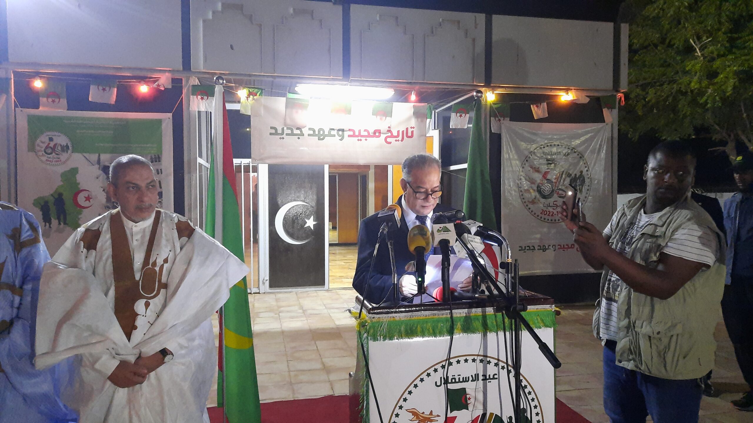 رؤيا بوست: خلدت سفارة الجمهورية الجزائرية الديمقراطية الشعبية في موريتانيا ذكرى عيد التحرير ال60، وقال سعادة محمد بن عتو سفير الجزائر لدى موريتانيا بأن البلدين سيرتبطان بأول طريق بري شرعي بين موريتانيا وشمال أفريقيا .