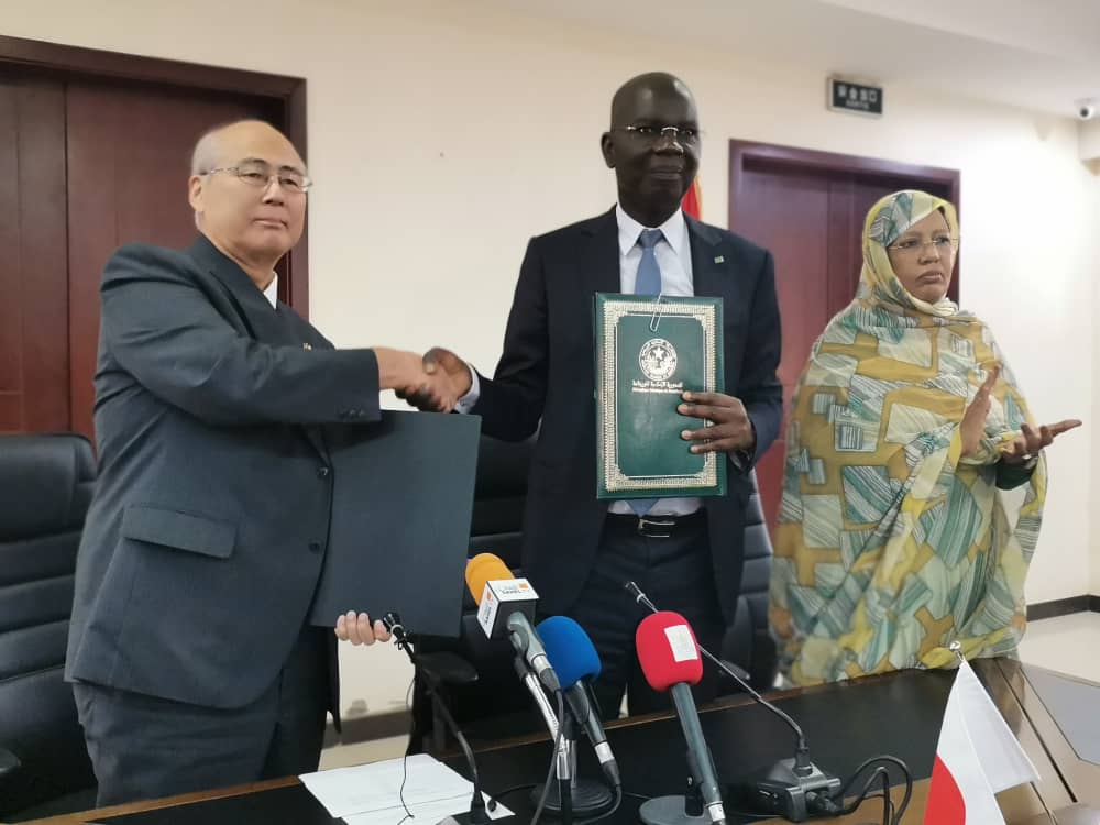 وقع معالي وزير الشؤون الاقتصادية و ترقية القطاعات الإنتاجية السيد *أوسمان مامودو كان* صباح اليوم الخميس بمباني الوزارة، مع سعادة السيد *نوريو إهارا*، السفير الياباني في ببلادنا ، وبحضور السيدة/ *فاطمة بنت خطري* ، مفوضة الامن الغذائي ، على تبادل للوثائق متعلق بمنحة في إطار برنامج المساعدة الغذائية للسنة المالية اليابانية 2022.