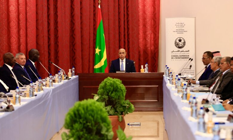ويعول على المجلس في الإسهام في تعزيز فرص الاستثمار في موريتانيا من خلال تحديد واقتراح التدابير المحفزة والملائمة لتنمية الاستثمار الخاص الوطني والأجنبي إلى جانب تعزيز القدرة التنافسية للاقتصاد.
