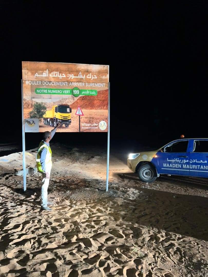 انهت فرقة السلامة الميدانية في شركة معادن موريتانيا اليوم، عمليات تثبيت مجموعة من الإشارات التحسيسية والمرورية على طريق الشيخ سيد امحمد الكنتي الرابط بين تازيازت وتيجريت.