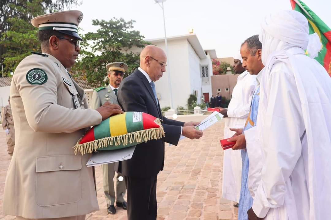 كرم فخامة رئيس الجمهورية السيد محمد ولد الشيخ الغزواني، شهداء الوطن الثلاثة، الذين سقطوا مؤخرا دفاعا عن أمن واستقرار الوطن، من خلال توشيحهم بوسام الإمتنان الوطني، تقديرا لتضحيتهم من أجل البلاد وعرفانا لشجاعتهم في الميدان.