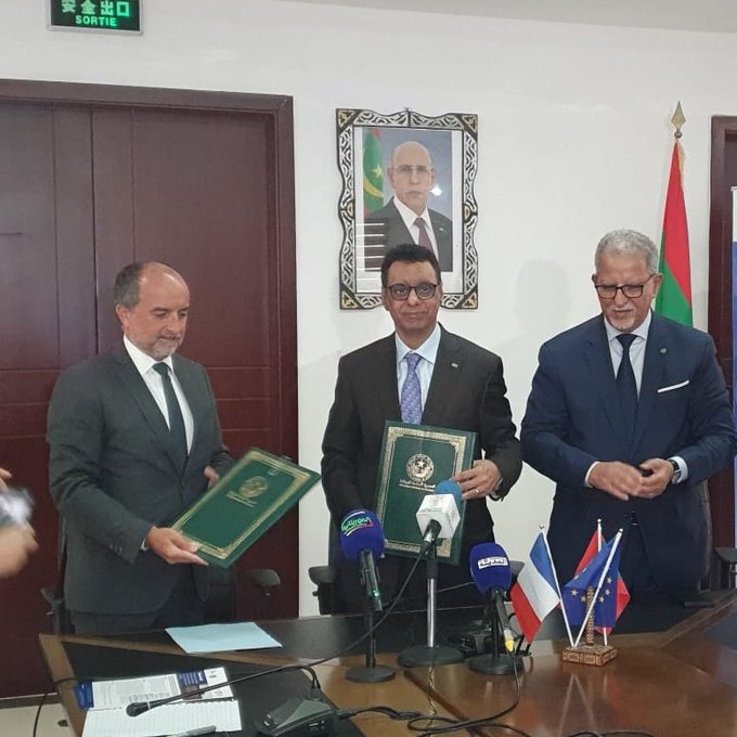 وقد تم التوقيع مع سعادة السفير الفرنسي ببلادنا السيد ألكساندر غارسيا ومديرة مكتب وكالة التنمية الفرنسية بموريتانيا السيدة بنديكت بريست.