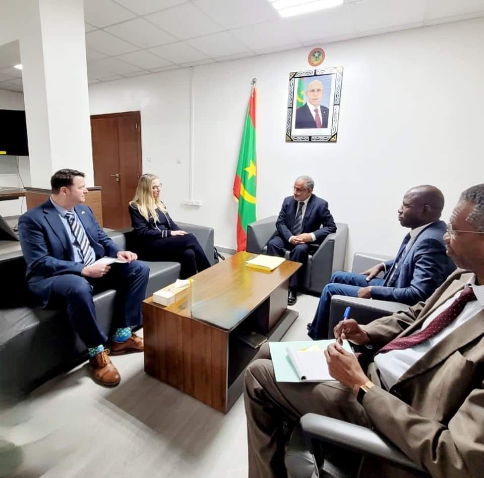 استقبل معالي وزير التجهيز والنقل السيد محمد عالي ولد سيدي محمد بمباني الوزارة، صباح اليوم الخميس الموافق 21 دجمبر 2023، سعادة سفيرة الولايات المتحدة الأمريكية المعتمدة لدى بلادنا السيدة سينثيا كريشت ،