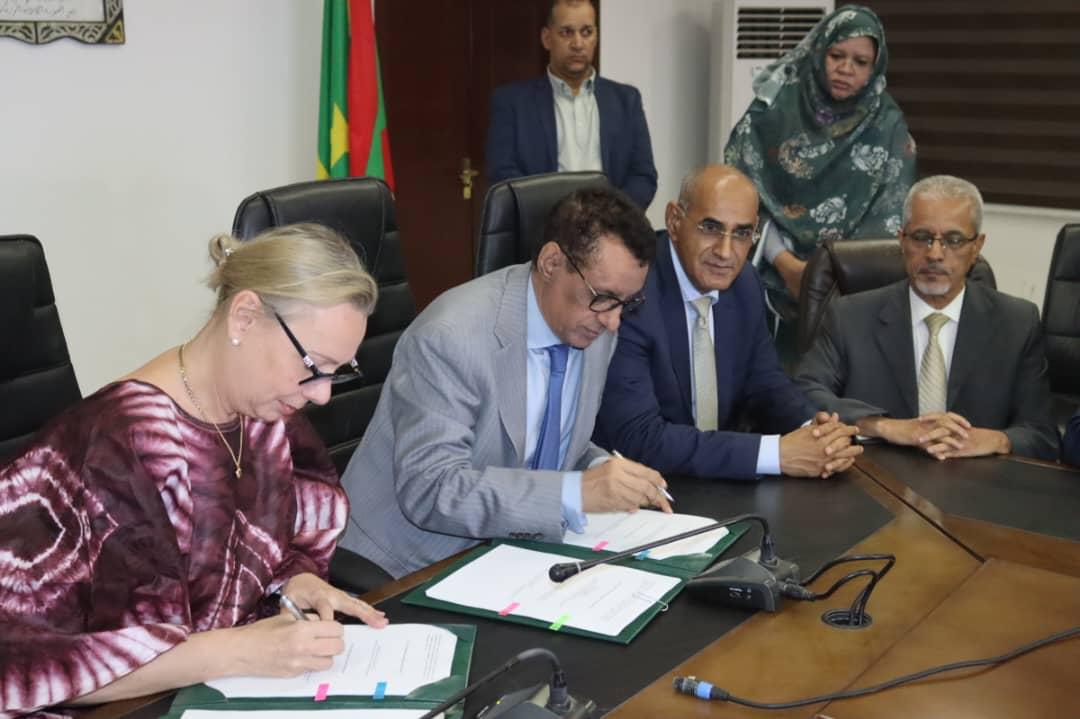 وقع معالي وزير الاقتصاد والتنمية المستدامة، السيد عبدالسلام محمد صالح، مساء اليوم الأربعاء في نواكشوط، مع سعادة السيدة/ مالين بلومبرغ، المديرة العامة المساعدة للمكتب الجهوي للتنمية وخدمات شمال إفريقيا، بالبنك الإفريقي للتنمية، على اتفاقيتي قرض وهبة لتمويل مشروع الربط الكهربائي 225كيلو فولت بين موريتانيا ومالي، وتطوير المحطات الشمسية ذات الصلة.