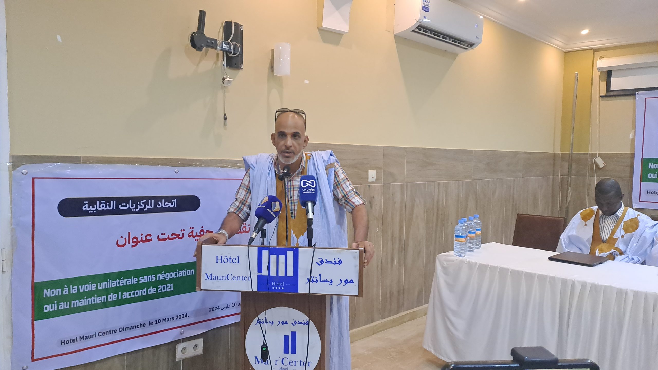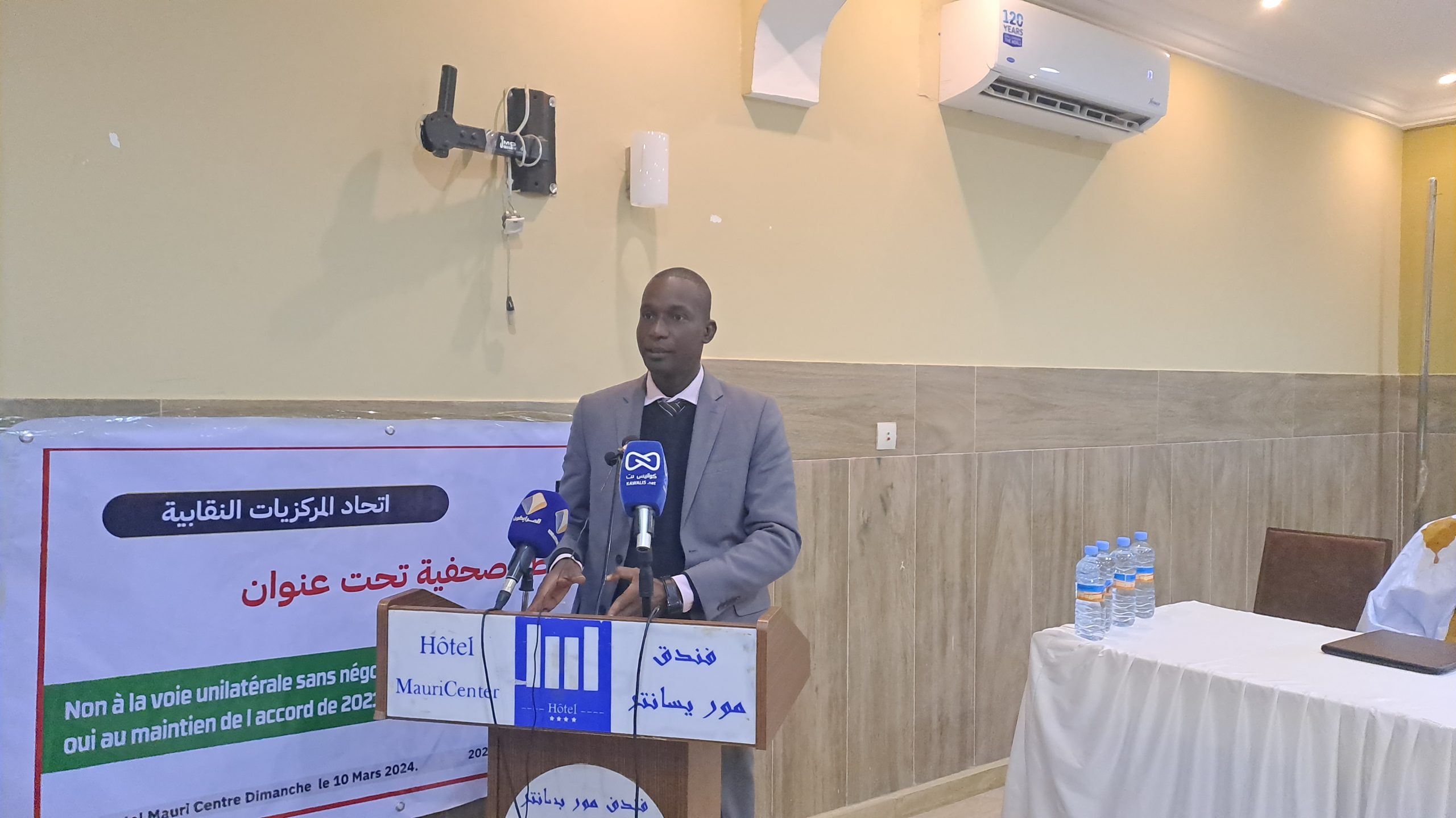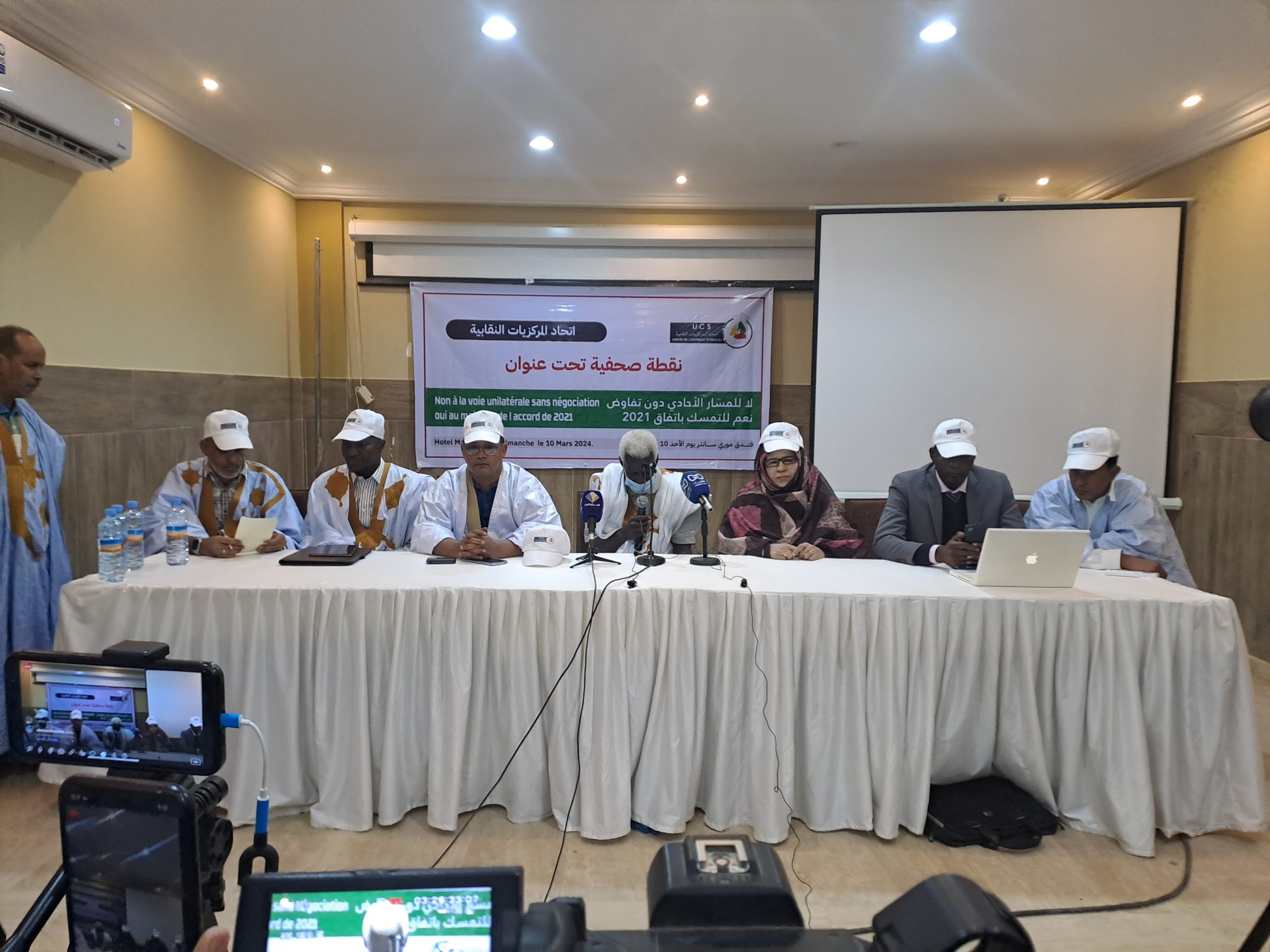 نظم إتحاد المركزيات النقابية UCS نقطة صحفية في فندق موري سانتر بالعاصمة نواكشوط للتعبير عن تذمرهم من تعاطي الجهات الرسمية معهم.