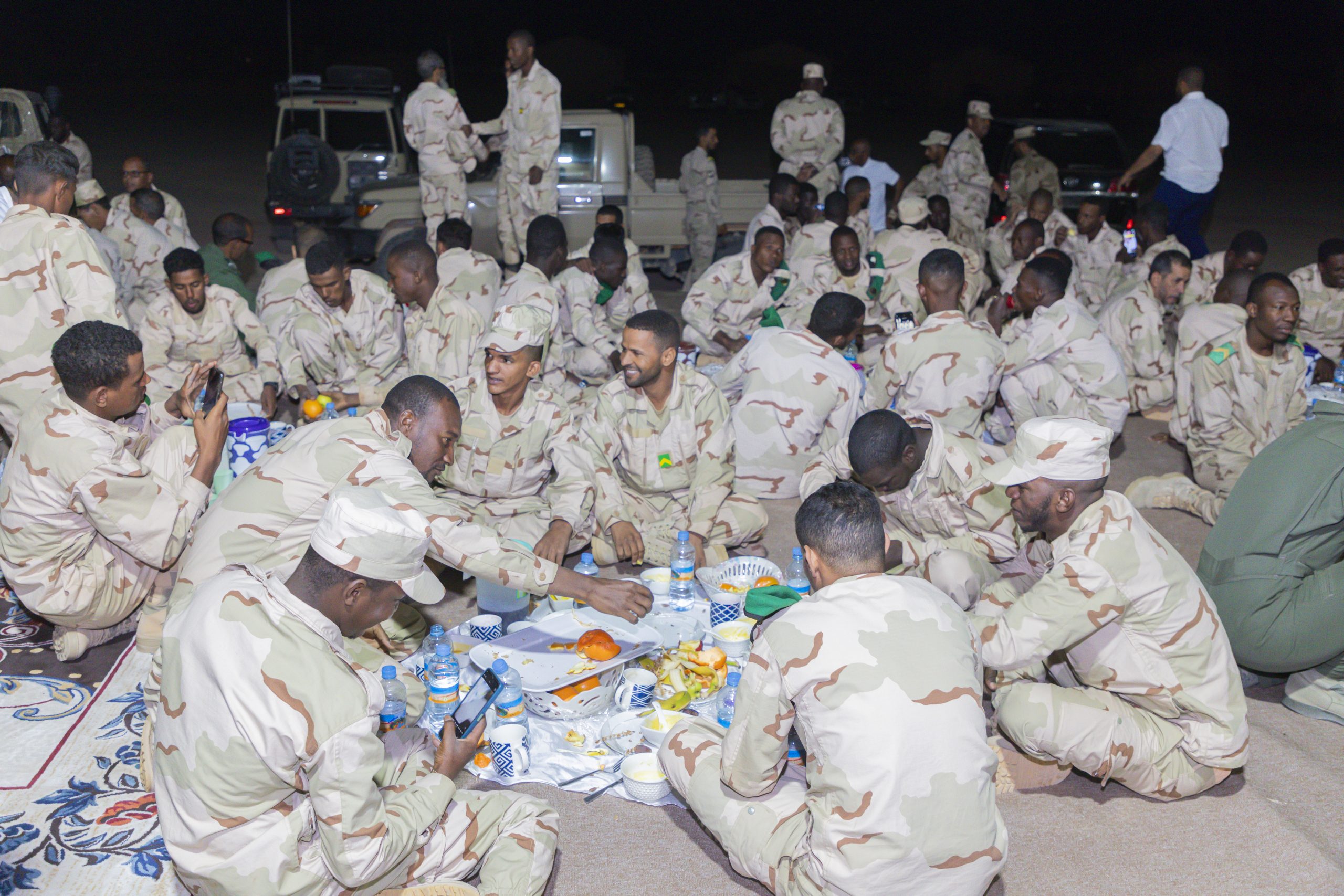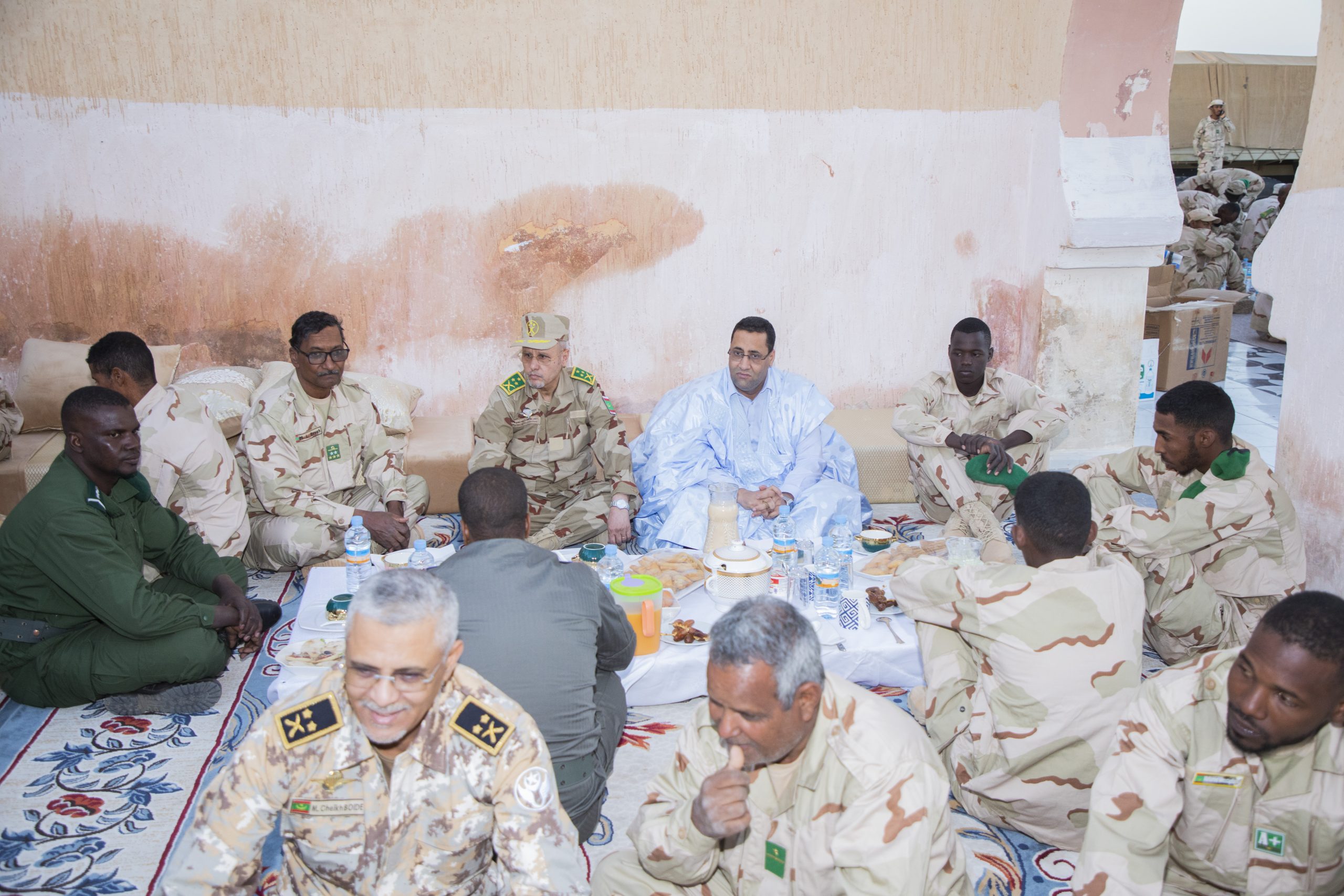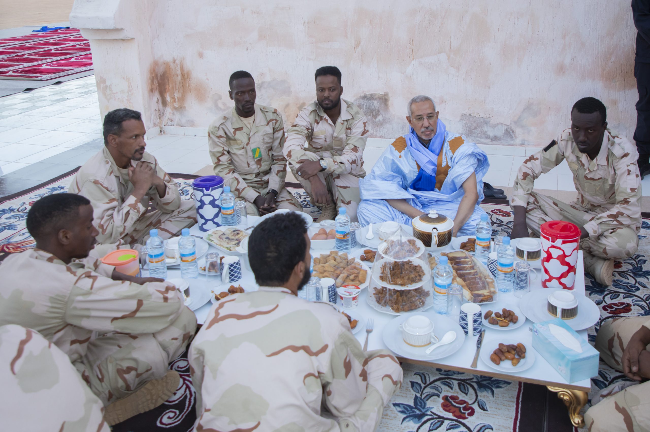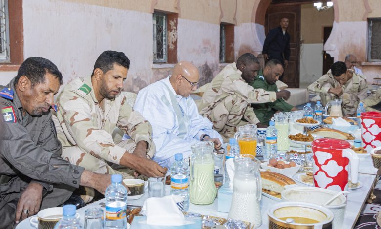 شارك فخامة رئيس الجمهورية السيد محمد ولد الشيخ الغزواني، الليلة مجموعة من الجنود وضباط الصف والضباط المرابطين في مدينة بئر أم كرين، بولاية تيرس الزمور ، إفطارهم الرمضاني.