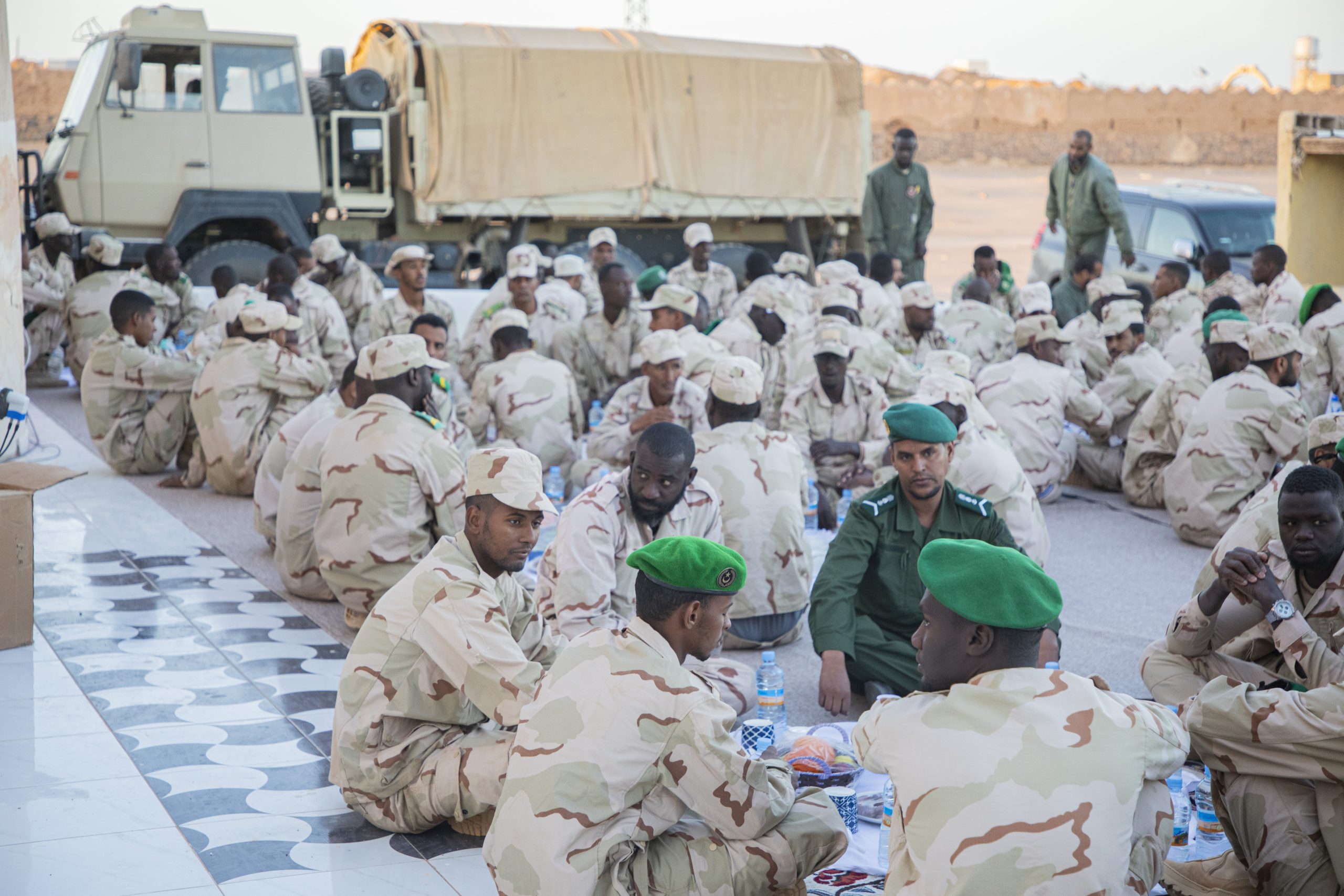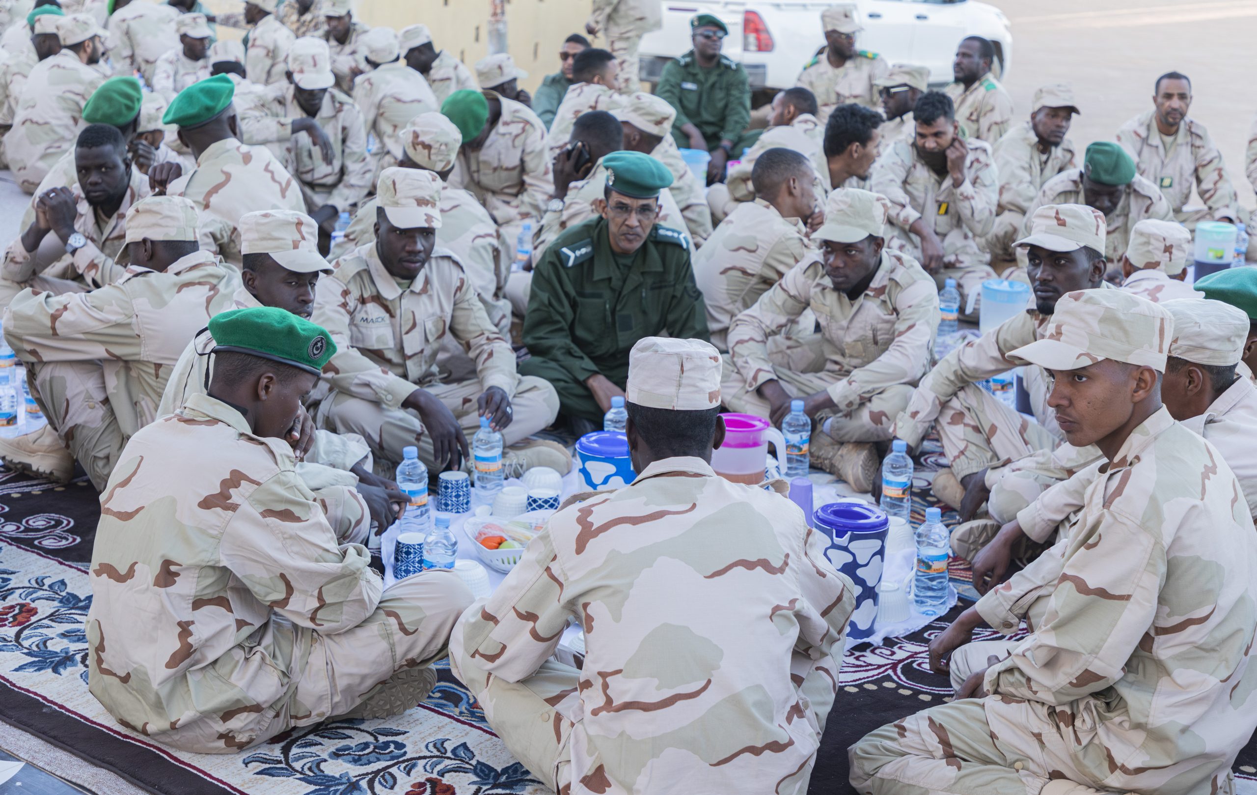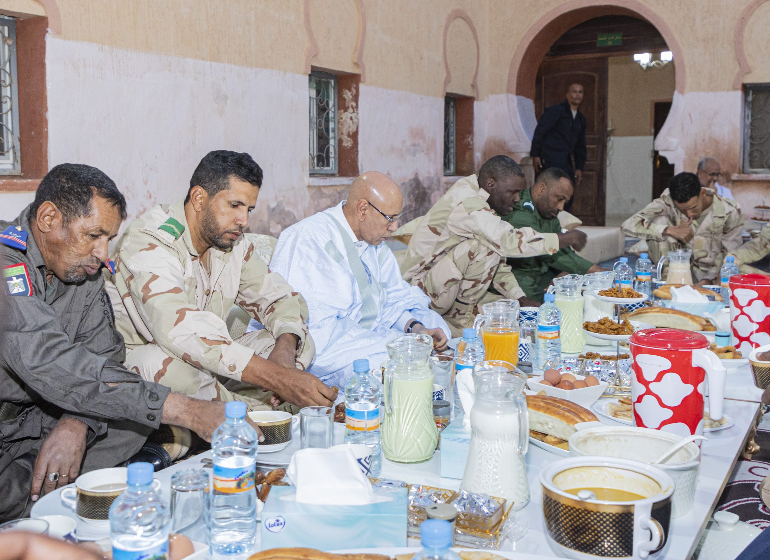 شارك فخامة رئيس الجمهورية السيد محمد ولد الشيخ الغزواني، الليلة مجموعة من الجنود وضباط الصف والضباط المرابطين في مدينة بئر أم كرين، بولاية تيرس الزمور ، إفطارهم الرمضاني.