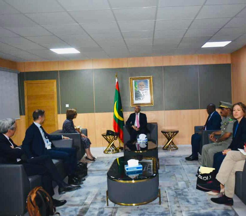 استقبل وزير الدفاع الوطني السيد حنن ولد سيدي، صباح اليوم الجمعة، بمكتبه، بعثة من الاتحاد الاوروبي برئاسة السيدة ريتا لارانجينها المديرة العامة للاتحاد الأوروبي في أفريقيا.