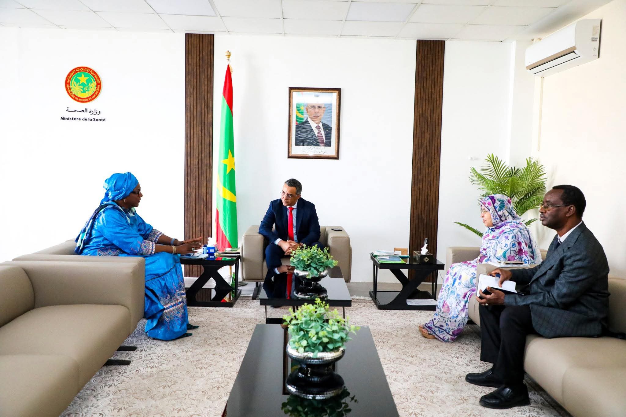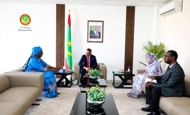 استقبل معالي وزير الصحة، السيد محمد محمود ولد اعل محمود، الاثنين في مكتبه، سعادة الممثلة المقيمة لمنظمة الصحة العالمية في بلادنا، السيدة شارلوت فاتي نجاي.
