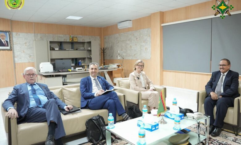 استقبل الأمين العام لوزارة الدفاع وشؤون المتقاعدين وأولاد الشهداء؛ العقيد إسحاق عبد الله إبراهيم، بمكتبه، ظهر اليوم الخميس 12 فبراير 2026، وفدا من الاتحاد الأوروبي، برئاسة السيدة باتريسيا لومبارت كوساك؛ مديرة شؤون إفريقيا بـجهاز العمل الخارجي للاتحاد الأوروبي.