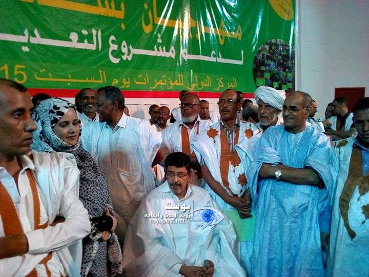 رؤيا بوست:نظم وجهاء و أطر ومنتخبون وأعضاء من الحكومة ينحدرون من ولاية لعصابة بحضور رئيس حزب الاتحاد من أجل الجمهورية الحاكم مهرجانا جماهيريا بقصر المؤتمرات بنواكشوط لدعم التعديلات على الدستور.
